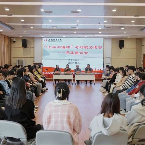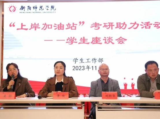 为鼓舞我校考研学子的考研士气,缓解备考压力,2023年11月29日下午三点,我校在东校区图书馆213报告厅开展了“上岸加油站”考研助力活动。学生工作部部长董俊,副部长周华,大学生心理健康教育中心教授刘衔华以及我校考研学生代表参加本次活动,本次活动由学生工作部副部长黄懿主持。