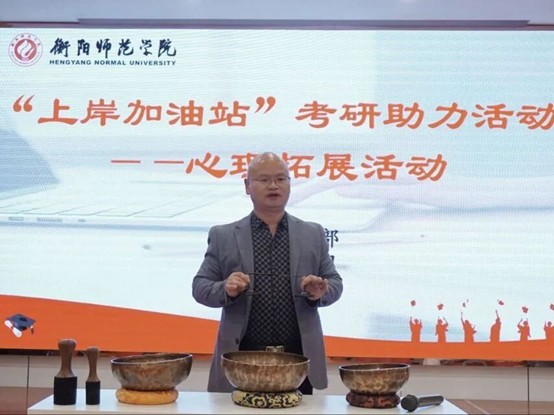 刘衔华结合自身的工作经历,针对备考中容易出现的问题,为现场的考生们解答疑惑。接着,他介绍了系列缓解压力的方法,并通过团辅的形式,引导同学们以积极阳光的心态备战研究生入学考试。