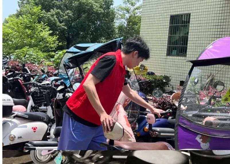志愿者组建学生社区专项引导服务队伍,一方面,在宿舍楼下等公共区域开展电动车停放引导工作。同时,协助保卫处,根据各楼栋设置的警戒线情况,对未停放在指定区域的电动车进行统一整理,将其摆放到规范位置,确保每辆车都“各就各位”,保障通道畅通无阻。