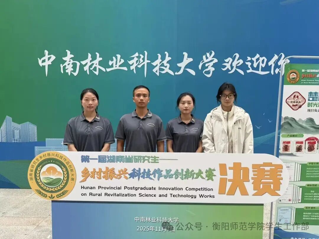 2025年11月7日,在刚刚落幕的“第一届湖南省研究生乡村振兴科技作品创新大赛”中,由我校张修昌、胡建忠老师指导,研究生左力、唐小兰、殷汝雪、赵萍萍、谭扬琴、冯珮玲、夏秀云共同完成的作品《楚腊熏语-时光窖藏的山河之礼》,经过激烈角逐,从众多优秀作品中脱颖而出,荣获大赛二等奖。