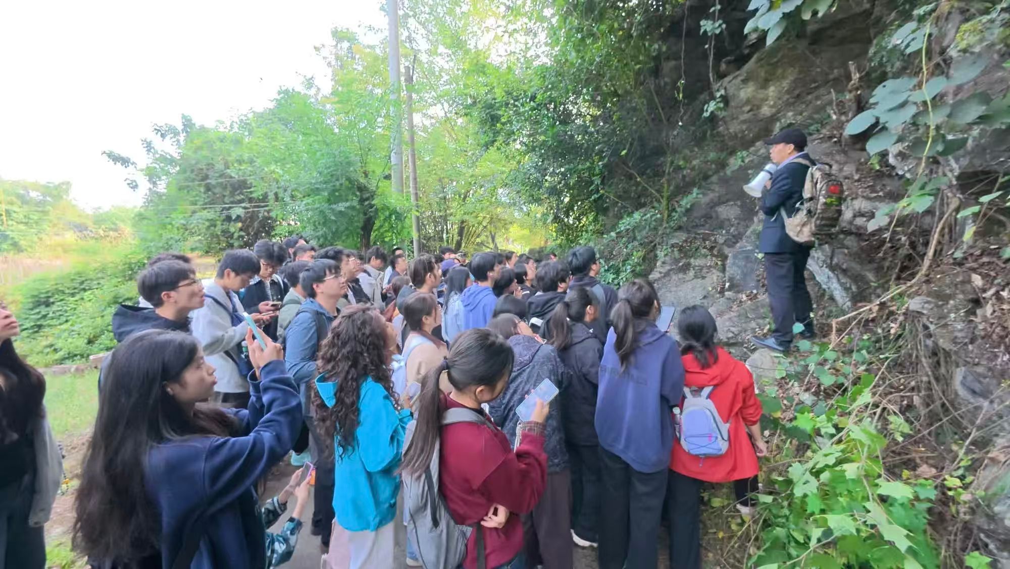 在广西桂林国家森林公园,同学们采用“穿越法”深入林区,以此掌握了褶皱构造的野外判别方法。通过实地观察岩层的弯曲形态、辨析地层序列与测定岩石产状,大家直观地理解了导致褶皱形成的地质应力作用,并学会了准确区分背斜与向斜的核心特征。由此,课堂上关于“褶皱是岩层受力弯曲形成的地质构造”这一抽象概念,成功转化为可观察、可分析的具体现象。