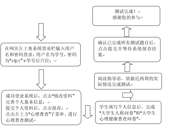 各学院要向学生说明心理健康测评的目的、意义及测试要求,要求学生积极配合严格按照规定程序和要求操作,以保证心理测评工作有序进行和圆满完成。
