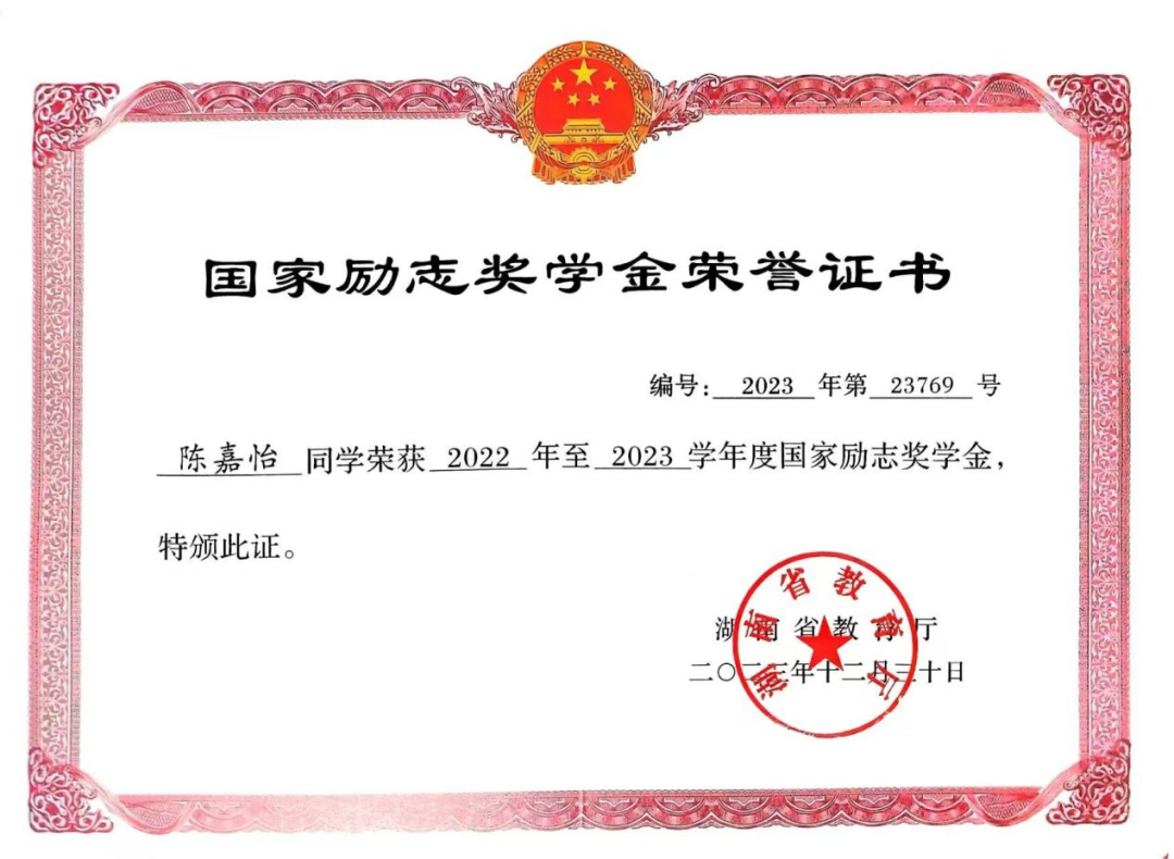 3.2023年荣获国家励志奖学金