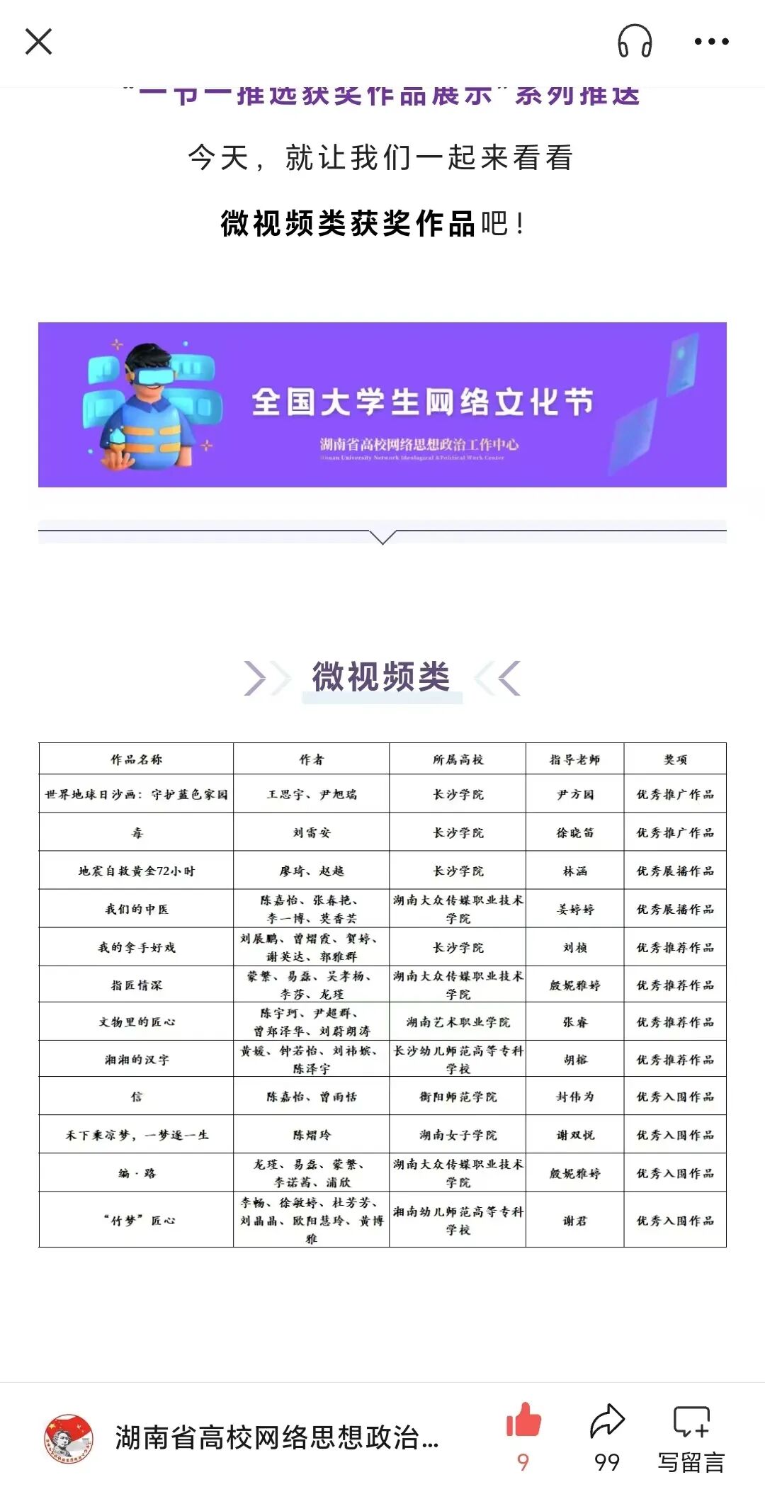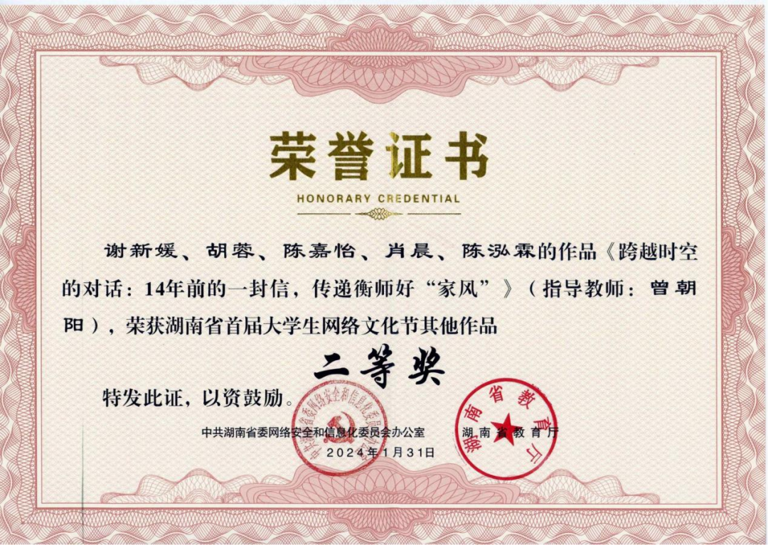 5.2024年荣获湖南省首届大学生网络文化节微视频作品二等奖