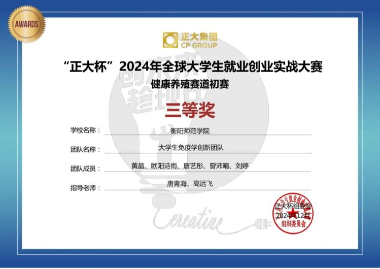 5、2024年“正大杯”全球大学生就业创业实战大赛初赛三等奖