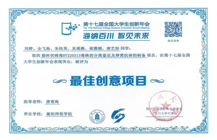 1、第十七届全国大学生创新年会“最佳创意项目”奖