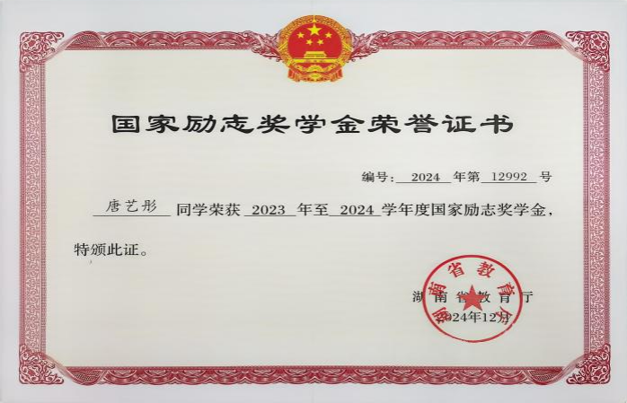 获得国家励志奖学金和校一等奖学金对我而言,既是肯定也是鞭策。这些荣誉不仅是对我过去努力的认可,更是对我未来继续前行的激励。在追求这些荣誉的过程中,我深刻体会到天道酬勤的道理。记得在大二下学期,我同时面临专业课学习、比赛材料申报的多重压力。我知道平时的积累固然重要,但期末冲刺同样关键。在考试前三天彻底完成比赛材料申报后,我连续三天熬夜到凌晨三点,进行考前冲刺背诵。这些经历让我明白,荣誉的背后是无数个日夜的坚持。学习没有捷径,唯有脚踏实地。它们不仅增强了我的自信心,更让我懂得了坚持和自律的价值。未来,我会带着这份荣誉带给我的动力,在求知路上继续前行。