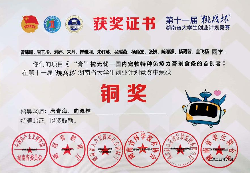 3、“长沙银行杯”湖南省“科技+”大学生创新创业大赛优秀奖