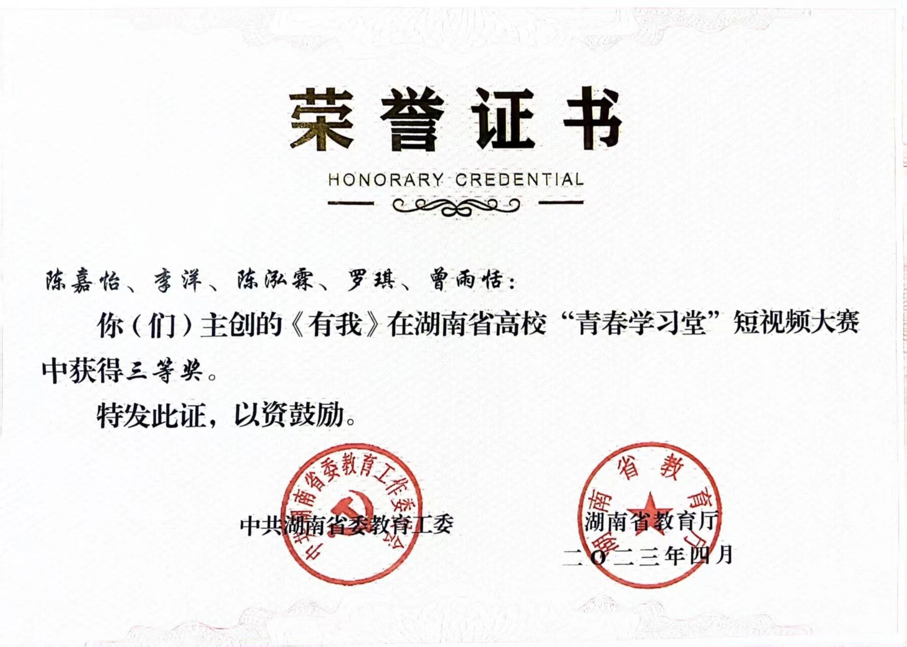 “青春学习堂”短视频比赛三等奖