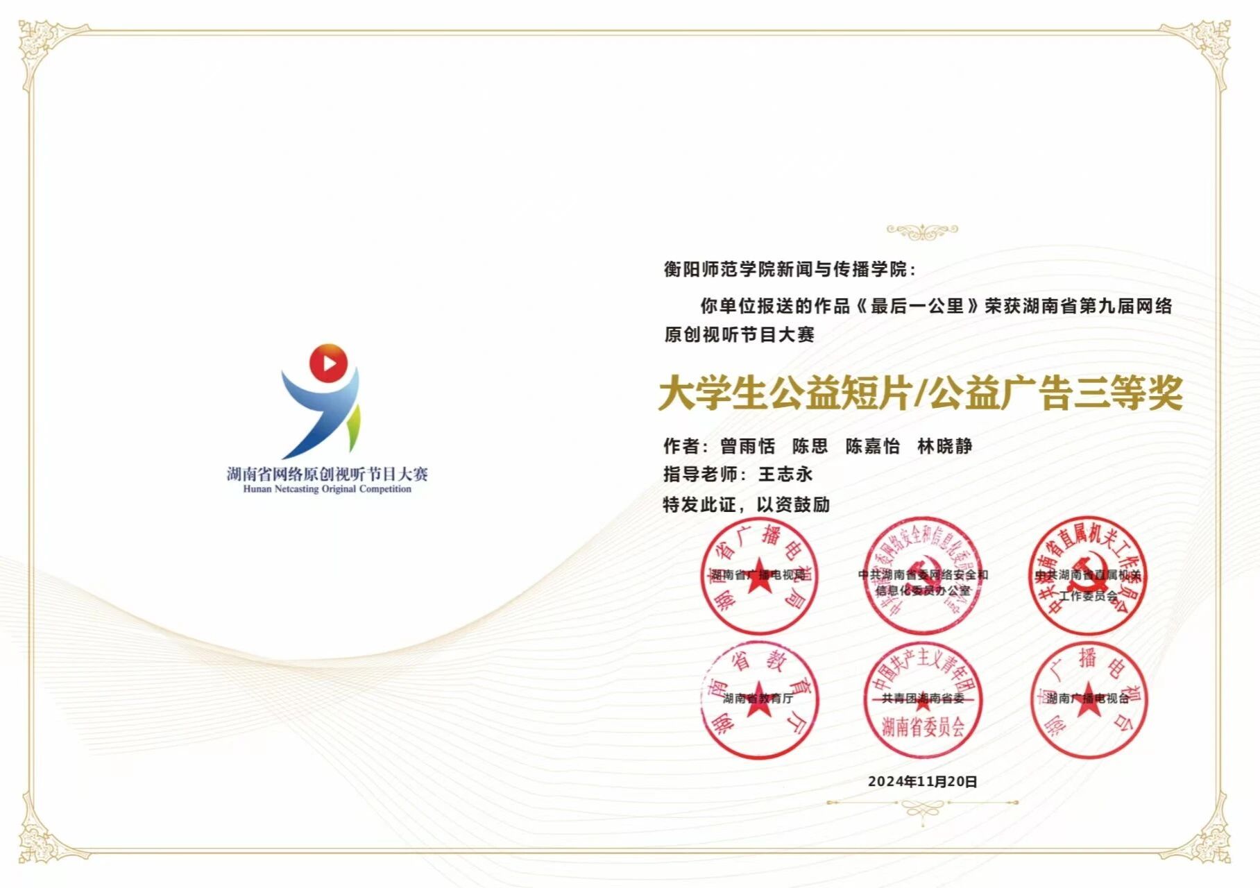 网原创视听节目大赛公益短片三等奖