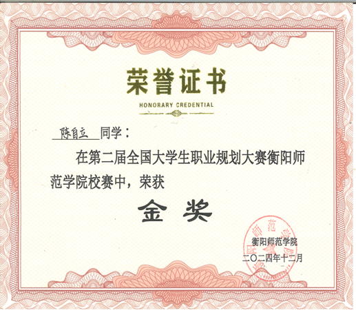 第二届全国大学生职业规划大赛校赛金奖