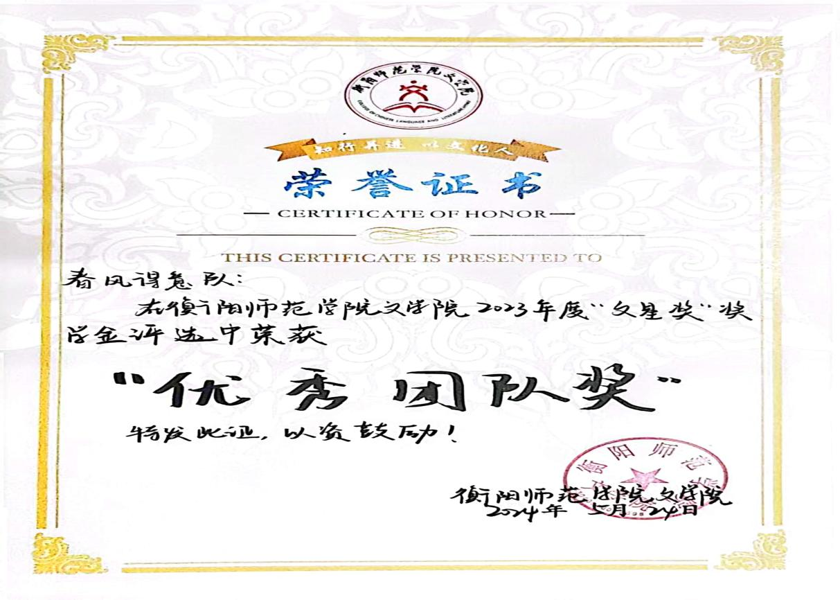 1.2024年获得院级文星奖“优秀团队奖”(负责人)