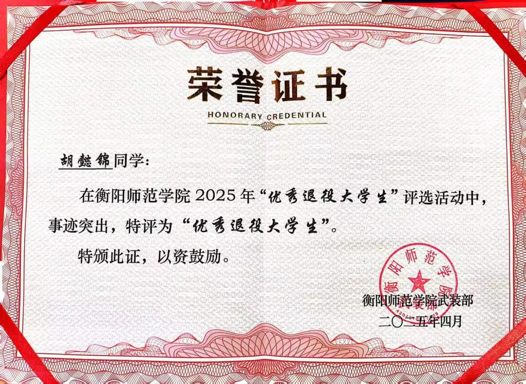 2025年被评为“优秀退役大学生”