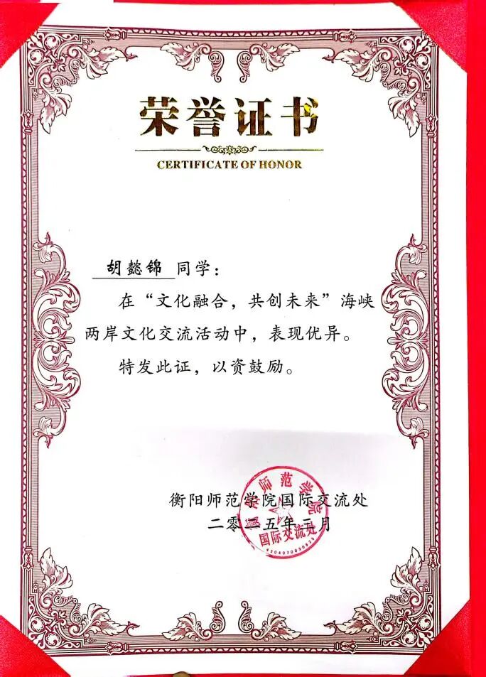 2025年获“文化融合,共创未来”海峡两岸文化交流活动荣誉证书