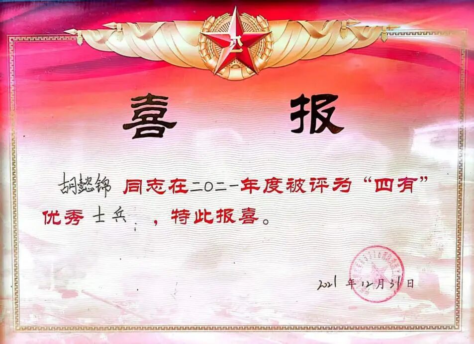 2021年被评为四有士兵