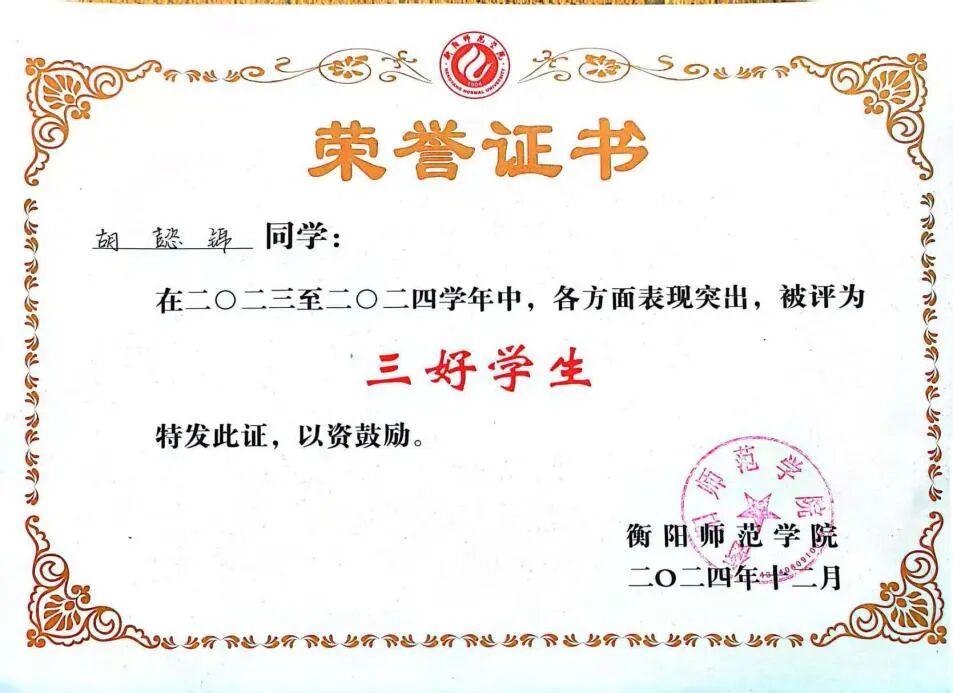 2023年获校三好学生