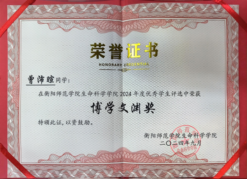 1.衡阳师范学院生命科学学院2024年度博学文渊奖