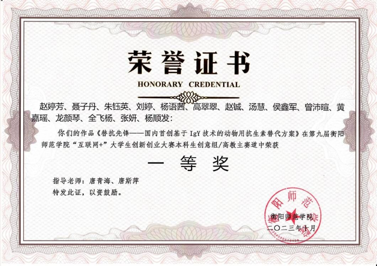 1.衡阳师范学院大学生创新大赛(2024)一等奖