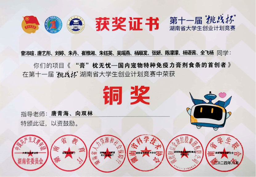 2.“长沙银行杯”2024年湖南省“科技+”大学生创新创业大赛优秀奖