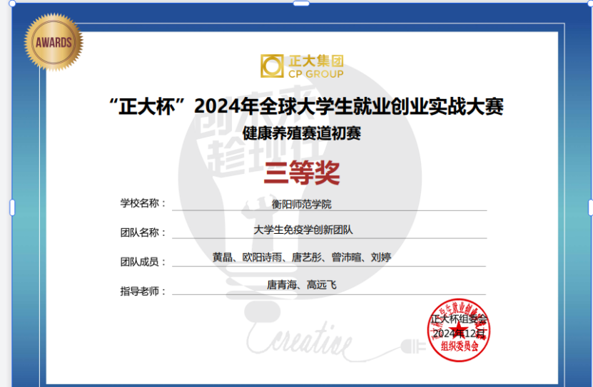 2.“正大杯”2024年全球大学生就业创业实战大赛三等奖
