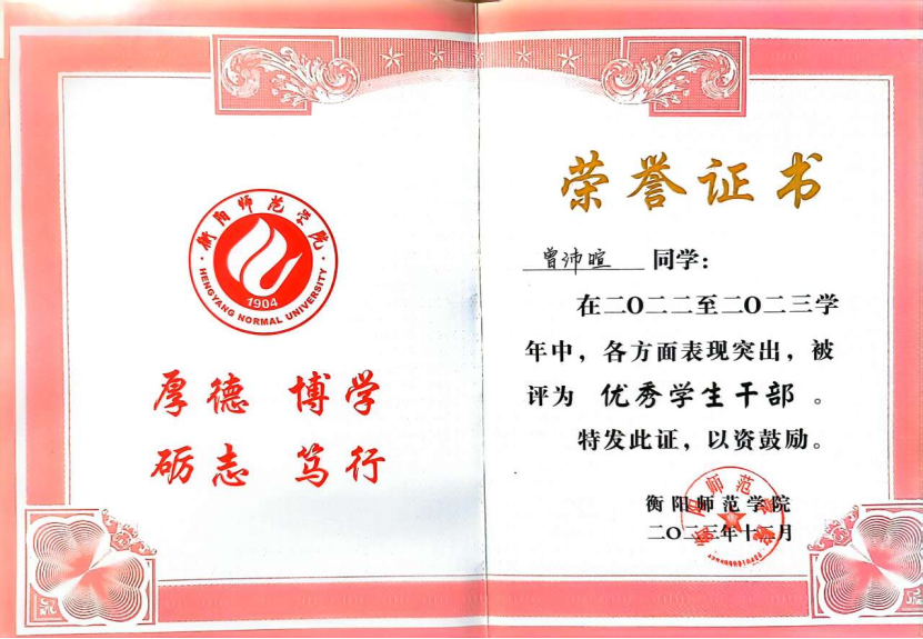3.衡阳师范学院2022-2023学年校“优秀学生干部”称号