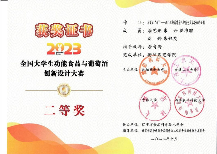 5.2023年全国大学生功能食品与葡萄酒创新设计大赛二等奖