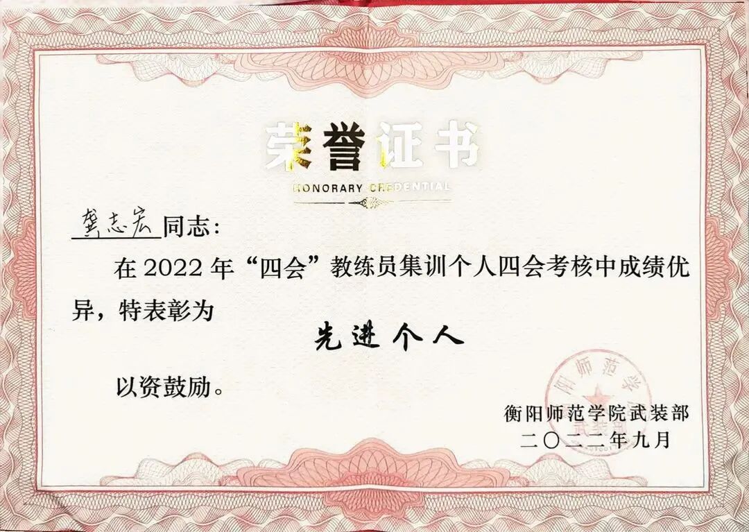 她认真学习马克思列宁主义等重要思想,以此树立起正确的世界观、人生观和价值观。为传递爱国精神,她毅然加入衡阳师范学院军事技能教导队。在队里,她以高标准严格要求自己,努力向优秀教官看齐。从日常训练到配合学校完成疫情防控管理、新生军训等大型活动工作,她始终秉持着爱国、荣誉、责任、使命的担当意识,将这些新时代精神传递给新生,以坚定的信念在思想的道路上不断奋进,为身边人树立起精神标杆。