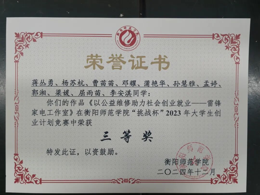 自2021年入学成为雷锋家电工作室的一员,蒋丛勇便在志愿服务的道路上笃定前行。他活跃于校园、寝室、社区、乡村的义务维修现场,风雨无阻地完成每学期10次、每次1.5小时的工作室值班维修此外,他还积极投身“三下乡”社会实践,为偏远地区居民送去电器维修服务,参与新生志愿迎新、家乡志愿活动等。在校期间,累计参与大小志愿服务活动90余次,志愿服务时长高达450小时。从摆台义务维修家电,到科普电器使用维护与用电安全知识;从给中学生讲解维修知识,到为工作室成员传授维修理论课,他始终用行动践行着志愿精神。蒋丛勇用专业与奉献诠释着新时代青年的担当,他的事迹为广大师生树立了榜样,也激励着更多人投身志愿服务,以实际行动传递温暖与力量。