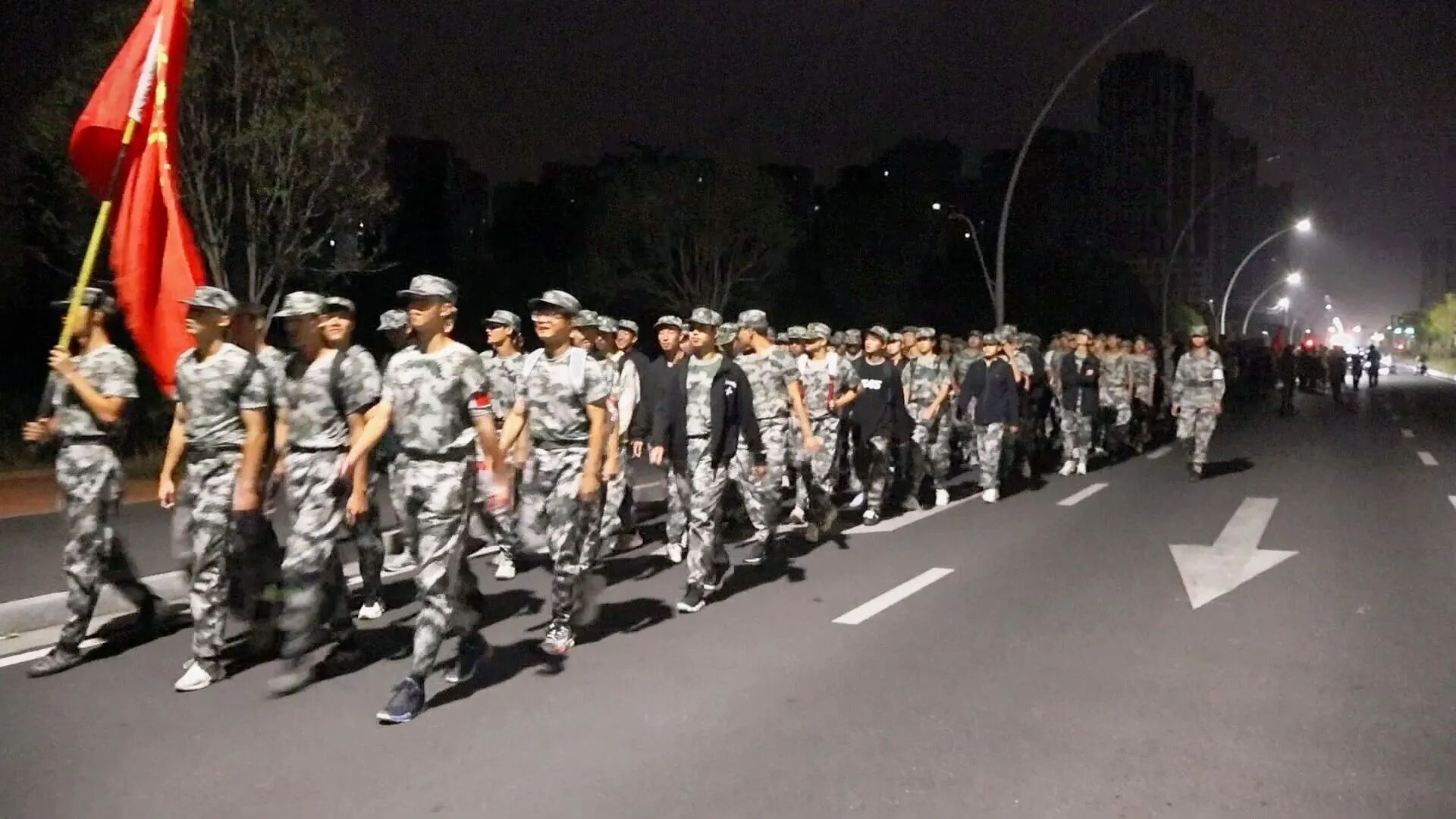 凌晨4:50,六十支连队于风雨田径场肃然列阵、整装待发。铿锵口令划破黎明前的寂静,震天口号激荡秋日凌晨的云层。随着校武装部部长董俊一声令下,2025级新生军训行军拉练,正式启动!
