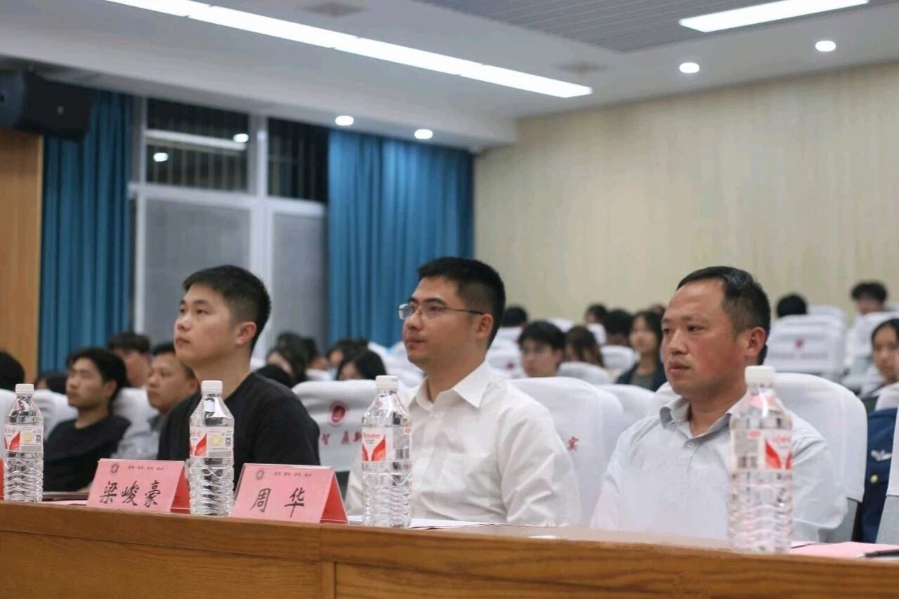 周华向退役复学大学生致以崇高敬意。他指出,同学们的亲身经历充分表明,军旅训练与校园成长紧密相连、相互成就,共同谱写了青春奋斗的精彩篇章。接着,周华副部长向退役大学生们提出三点殷切期望:一是永葆军人底色,把部队里养成的纪律意识融入学习,助力学业进步;二是重视团队协作,凝聚集体力量,攻克学习和生活中的重重困难;三是勇担时代使命,以军人担当引领积极校园风尚。他还暖心承诺,学校会为大家提供全方位支持,鼓励大家保持军人作风,用奋斗精神感染身边同学,期待大家在未来的学习生活中不断发光发热,书写属于自己的精彩篇章 。
