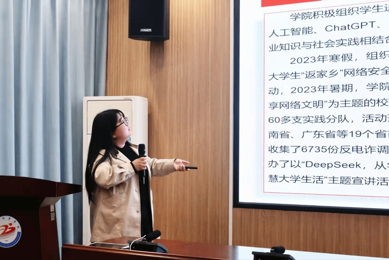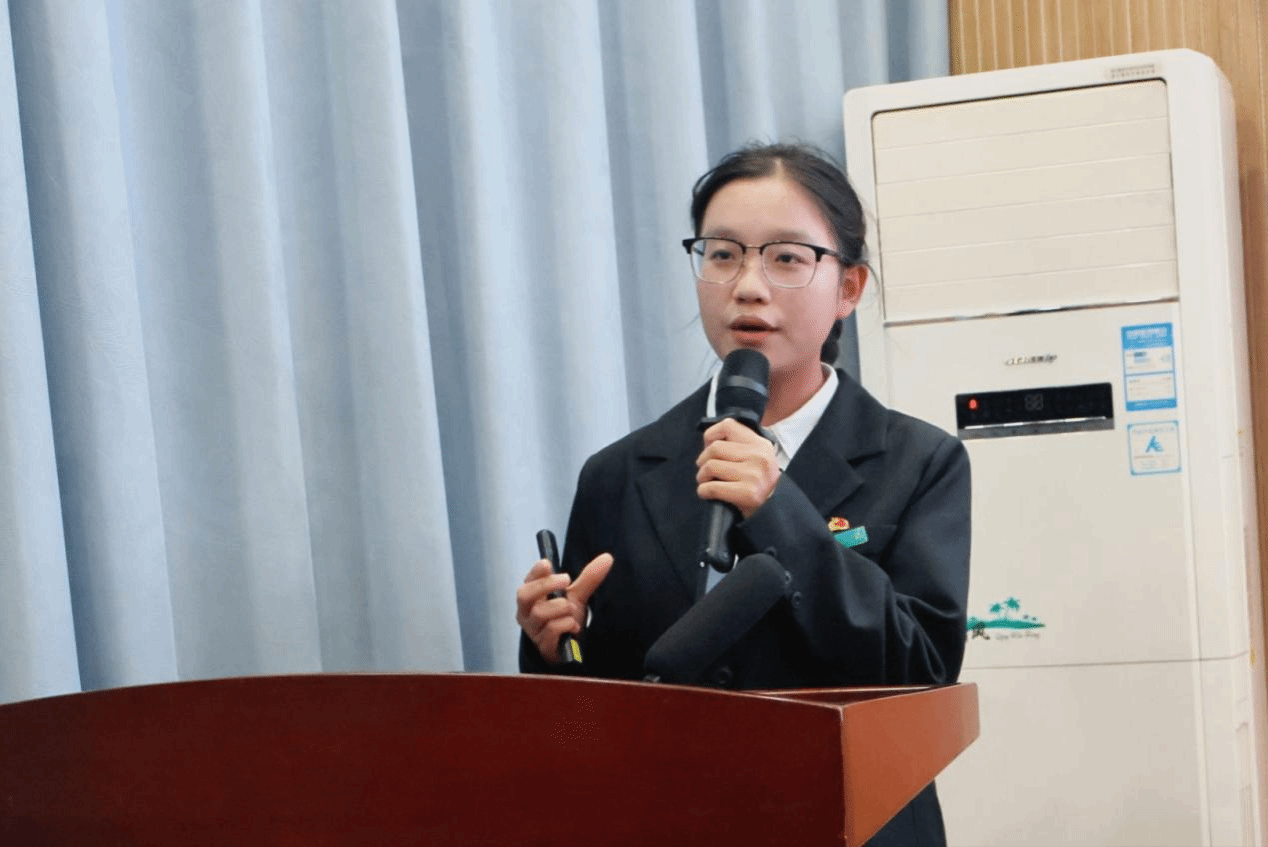 随后,“初心”宣讲团的李璐颖、兰雅珍同学先后作主题宣讲。李璐颖以“歌声里的鱼水情深与红色记忆”为主题,从《十送红军》的创作背景与感人故事切入,展现了军民一家的鱼水深情;兰雅珍则以“滴水汇聚,初心永续”为主题,从上甘岭战役的“水”切入,引领师生感悟战士们的钢铁意志与家国情怀,并呼吁青年将个人理想融入国家发展的洪流。