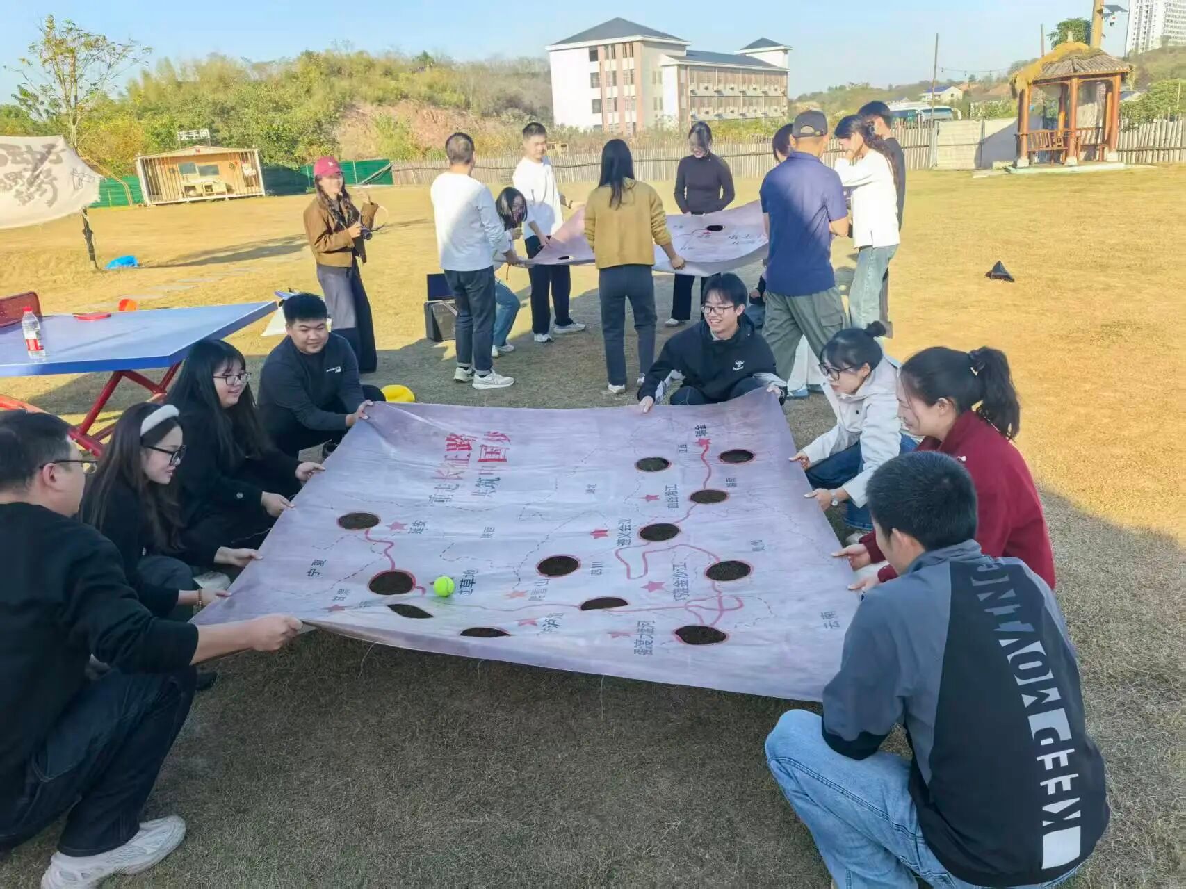 11月29日,我校辅导员奔赴活动地点,在秋日的户外气息中,一场以“聚力·创新·超越”为主题的素质拓展活动热烈展开。学生工作部相关负责人与全体辅导员共同参加了此次活动。