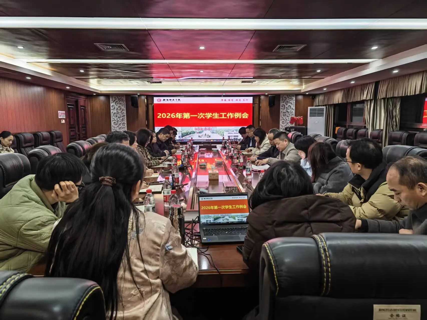 3月4日晚7点,我校在东校区行政楼二会议室召开2026年第一次学生工作例会,校党委委员、副校长唐芳贵出席会议并讲话。学生工作部、后勤处、保卫部、研究生院、校团委等相关职能部门负责人及各学院党总支副书记参加会议。会议由学生工作部部长朱贤友主持。