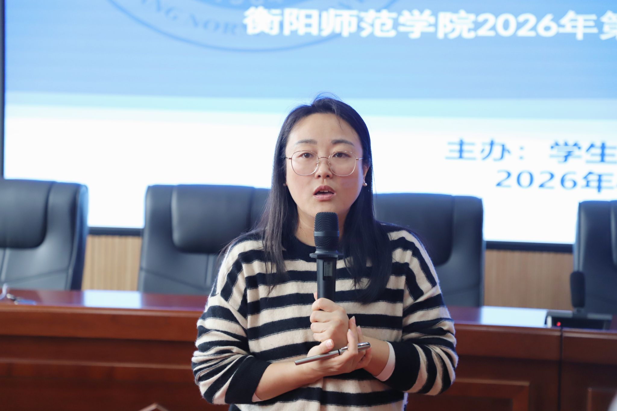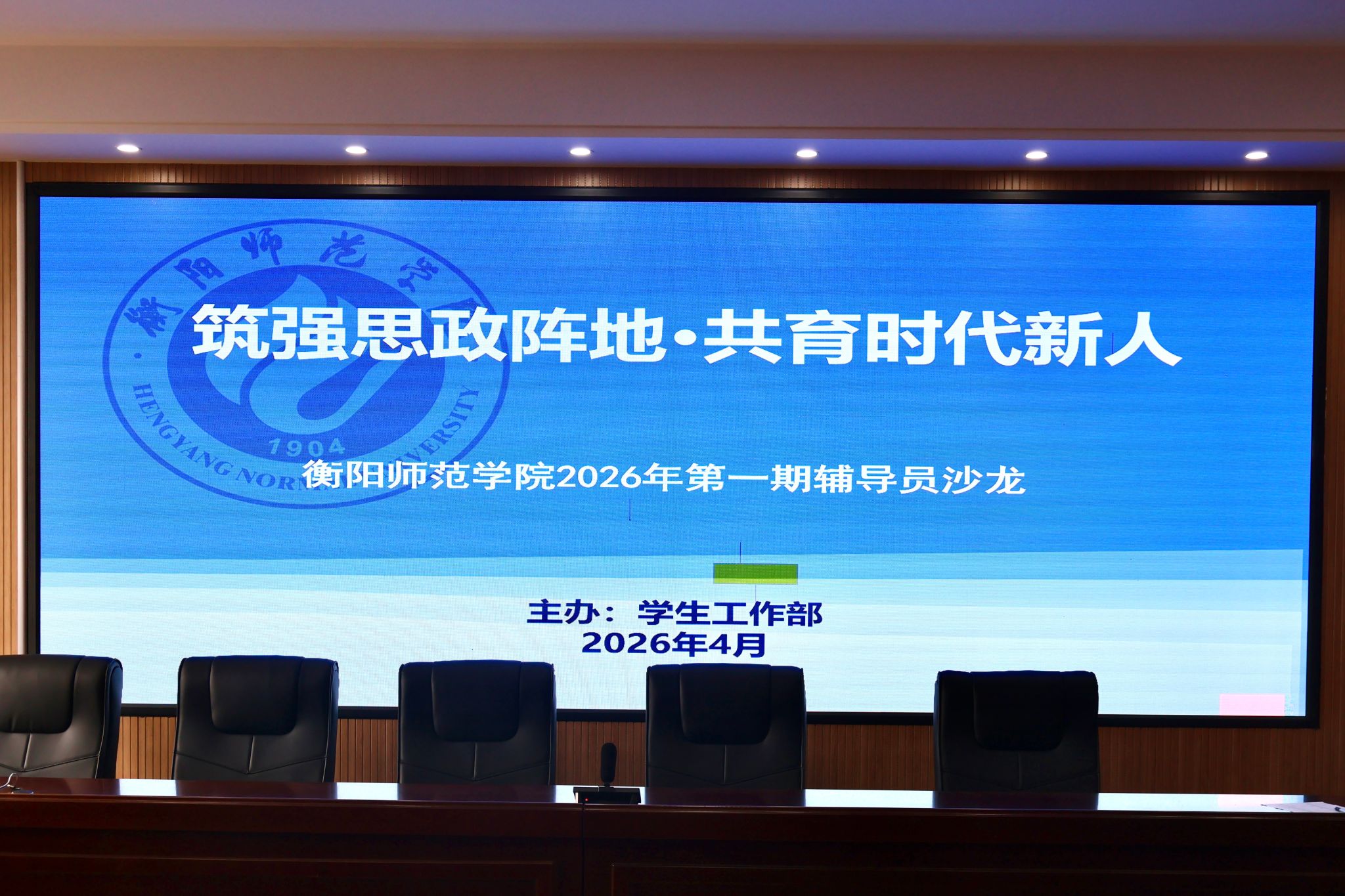 4月22日下午,我校“筑强思政阵地·共育时代新人”2026年第一期辅导员沙龙在东校区仁智楼B206顺利举办。学生工作部副部长齐春媚和各学院学工办主任、全体辅导员加活动。本次沙龙由学生工作部学生教育科科长张杰主持,学生公寓服务中心肖润超作专题分享。